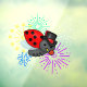 The New Years ladybug is ready for the New Year dressed in a top hat with a noise maker and fireworks.