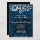 New years party invitation with blue and silver colours. The glittery ornamental design at the top includes the word party. You can easily customise the text for any occasion if you'd like. Note: This is graphic art and contains no messy glitter.