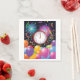 Celebrating the new year is best done with a good party. This design is the perfect new years party design. It is a clock set against a black backdrop and a whole lot of balloons. This new years party design looks great on these paper napkins. Perfect for yourself or as a gift