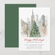 This festive Christmas holiday moving announcement features the saying "Happy Holidays from Our New Place" with a beautiful watercolor city street with a big Christmas tree. The announcement is perfect for sending to friends and family during the holiday season to let them know about your new address. The front of the announcement features the saying and the watercolor snowy city street scene, and includes your new address and contact information. The overall design is festive and charming, and the announcement is sure to put a smile on the faces of your loved ones.