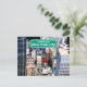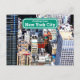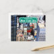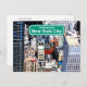 Postcard from New York City featuring a colourful photography of the artistical architectur of the city, the typical green and white city sign and the customisable text "Greetings from New York City".