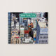 Puzzle from New York City featuring a colourful photography of the artistical architectur of the city, the typical green and white city sign and the customisable text "New York City".