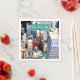Napkins from New York City featuring a colourful photography of the artistical architectur of the city, the typical green and white city sign and the customisable text "New York City".