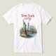 Celebrate New York City with this unique T-shirt featuring the Statue of Liberty, the Brooklyn Bridge, and Manhattan’s iconic skyline. The vintage-inspired yet modern flat design blends intricate details with a bold, stylish look, perfect for a white T-shirt. A creation by ZR21Designs, ideal for travel lovers, city enthusiasts, and fans of premium graphic style.