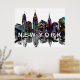 This work of art features the Manhattan, New York skyline covered in graffiti with a black ink reflection.
