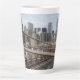 Chill out with a coffee latte in this ceramic mug that features a wrap-around photo image of the New York City skyline as viewed from the Brooklyn Bridge in Lower Manhattan. Select your latte mug size. Makes a great travel souvenir!