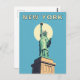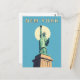 A stunning New York City postcard featuring a graphic, retro-style portrait of the Statue of Liberty. This illustration uses bold color-blocking and clean lines typical of classic vintage travel posters and Mid-Century Modern design. The perfect New York souvenir or gift for anyone who loves the city's history and iconic landmarks. Use this Statue of Liberty postcard to send greetings from the Big Apple or as an artistic piece of USA travel art