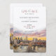 Ideal for urban weddings, this save-the-date card is a perfect introduction to a city-themed celebration, combining modern elegance with artistic flair. The sunset tones and detailed cityscape make it both a practical reminder and a beautiful keepsake.