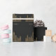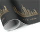 A clean and elegant graphic illustration featuring the iconic New York City skyline. Key landmarks like the Empire State Building and the Statue of Liberty are rendered in a minimalist, golden line art style. The text "NEW YORK" is written in a matching golden font below the cityscape. The design is set against a solid dark gray background, creating a sophisticated and modern aesthetic.