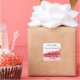 New York city skyline is an original watercolour painting by artist Monika Howarth Wedding favours stickers. New York City skyline is a panorama of Statue of Liberty, Brooklyn bridge, Empire state building, and sky scrapers. A pink painting with black typography. Personalise it with your details.