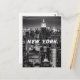 A dramatic black and white aerial view of the New York City skyline at night. The iconic Empire State Building stands tall in the centre, illuminated against the dark sky. The city's towering skyscrapers stretch out in all directions, creating a breathtaking and awe-inspiring scene. The Hudson River and the surrounding boroughs can be seen in the distance.