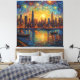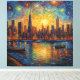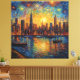 the New York City skyline by night painted in the style of famouw Dutch painter Van Gogh