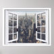 New York skyline city view, faux window for a windowless office wall. Fun, realistic optical illusion scenic poster for an office or study wall.