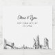 Modern New York City wedding skyline personalised champagne label. The design showcases a stunning sketch with the ability to customise your names and exact location. Enter the Zazzle design tool for additional customisations.