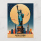 Experience the allure of New York State with this stunning travel postcard featuring the iconic Statue of Liberty bathed in moonlight, set against the dazzling NYC skyline. Bold colours and clean lines create a vibrant, graphic depiction that captures the spirit of freedom and adventure. Let this artwork inspire your journey to the heart of America!