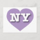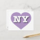 This postcard features a vibrant lavender heart containing the bold, white, upper case letters NY, the official abbreviation for New York, the empire state. The reverse side of the postcard is blank awaiting your handwritten sentiments or customised text.
