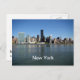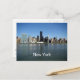 This postcard features the New York skyline during the day - the water in the foreground and the skyscrapers and cityscape as the main feature of the image.