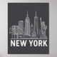 New York Skyline With Statue Of Liberty White Line Poster