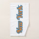 This custom hand towel features a design that displays the word "New York" in a Lobster print font with orange coloured letters blue outline in this custom state pride jersey style theme. This towel is made with a polyester blend front while the back is 100% cotton all towels will use sublimation/vibrant printing which is designed to last.