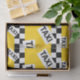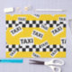 New York taxi cab driver yellow, black and white tissue paper. Ideal for taxi drivers, New Yorkers, and travellers. Taxi signs and black and white chequerboard pattern.