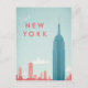 Vintage style travel poster of New York and the landmark Empire State Building. Text reads Visit New York. Original hand drawn and digitally rendered illustration by VintageTravelPosters.co.