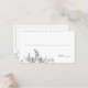 A set of unique wedding escort cards for a marriage taking place in the beautiful city of New York City, New York. They feature a stylised skyline of the city on one side, with a spot for the person's name to be written in. On the reverse side is a place for the wedding couple's names and wedding date with the skyline also presented in the bottom corner.