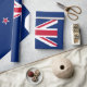 This design features the national flag of New Zealand, an island nation in the southwestern Pacific Ocean. The country is made up of two main landmasses, the North Island (Te Ika-a-Māui), and the South Island (Te Waipounamu), as well as around 600 smaller islands. New Zealand is about 1,200 miles east of Australia across the Tasman Sea and 600 miles south of the islands of New Caledonia, Fiji, and Tonga. The capital city of New Zealand is Wellington, while its largest city is Auckland; both cities are on the country's North Island. Other major cities in New Zealand include Christchurch, Hamilton, Tauranga, Dunedin, Lower Hutt, Palmerston North, Napier and Hibiscus Coast.