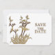 New Zealand Flax Flower Save the Date card. © Radenbrea Studios at Zazzle. Elegant and modern Save the Date card showing a New Zealand native flax flower. The heading is in faux gold print and the date and location is fully customizable. Just change to your own date and location and you're all set. The back has a silhouette of a flax plant and the card title in faux gold print. A matching Wedding Invitation, Thank You card and RSVP card are also available.