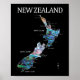NEW ZEALAND MAP DETAILED PAUA POSTER