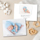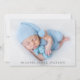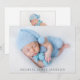 Announce your baby's arrival with our simple birth announcement, featuring a horizonal photo of your little one with their first name beautifully overlaid in grey sans serif font. You can personalise the announcement with your baby's middle and last name. On the back, there's space for an additional picture, along with birth statistics and a personal message.
