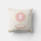 Personalised baby pillow keepsake with monogram and birth details in soft pink and yellow on heart background, a special custom keepsake gifts.