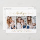 Newborn Photo Collage Modern Gold Script Thank You Postcard