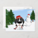 Unique Newfoundland Christmas design. Newfie with a bit of snow on his nose and a pool of drool at his paws. Irritated snowman looks on. To ward off the cold the Newfoundland has on a scarf and hat that are the colours of his country.