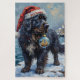 This majestic, photo-realistic painting captures the gentle nature of the "Newfie," shown wearing a warm Santa hat while carefully carrying a delicate Christmas ornament across a snowy harbor dock. A beautiful and detailed holiday design for Newfoundland owners.