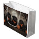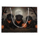 Unleash the spooky spirit with this eerie Halloween design featuring a pack of dogs under a dark, moonlit sky, surrounded by flying bats and glowing pumpkins. Perfect for those who love a touch of frightful fun with their furry friends!
