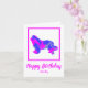 Newfoundland dog silhouette in crazy hot pink and blue bright modern abstract pattern. Funny birthday message inside can be changed to anything you want. Personalise card with name on the front below the Newfie dog shape.