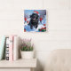 Newfoundland Running in Snow with Christmas Hat Square Wall Clock