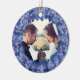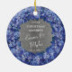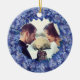 Digitally Painted holiday blue wreath keepsake Christmas ornament for the newly married couple. Photo on one side and text on the other side with couples name, and date.