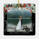 Newlywed Christmas Photo & Watercolor Holly Black Ceramic Ornament