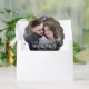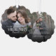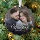 This modern minimalist personalised newlyweds Christmas paper ornament card features a photo template on each side, with elegant stylish overlay typography “Mr. & Mrs,” with name and year on the front, and a personalised message on the back.