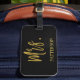 Newlywed Mrs. Last Name Gold Foil Modern Luggage Bag Tag. This bag tag is perfect for the honeymoon vacation after the wedding. The Mrs. last name has a Mr. Last Name Silver Foil Bag Tag.