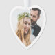 Cute Christmas ornament to commemorate your first Christmas married. On the front, your picture fills a white heart-shaped frame. On the reverse, you can personalise the expressions "1st Christmas," "Mr & Mrs" and personalise your names and year, all in seasonal red typography against a white background.