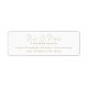 Newlyweds Script Mr Mrs Gold Return Name Address. Mr and Mrs is in an informal handwriting style set script and your name and address are below which you can easily personalise. Shown in gold on white however you can change to any colours of your choice via the customise further option.