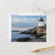 This beautiful Newport, Rhode Island postcard features a photo of the Castle Hill Lighthouse at sunset overlooking Narragansett Bay.