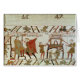 French School's News concerning Harold (c.1020-66) being brought to William (1018-87) and a house being burnt, detail from the Bayeux Tapestry, before 1082 (wool embroidery on linen) located at the Musee de la Tapisserie, Bayeux, France. The News concerning Harold (c.1020-66) being brought to William (1018-87) and a house being burnt, detail from the Bayeux Tapestry, before 1082 (wool embroidery on linen) was created around the 11th century.