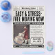 Make headlines with this vintage newspaper-style flyer designed for packing and moving services. Featuring a classic layout with bold headlines and customisable sections, this flyer is perfect for promoting your expert packing, loading, and moving offerings. Ideal for professional movers, relocation companies, and local moving specialists aiming to stand out with timeless style.