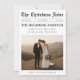 Celebrate your first holiday season as newlyweds with this elegant newspaper-style Christmas card featuring a timeless black and white layout and space for your favorite wedding photo. Perfect for couples marking their first Christmas married, this design blends modern magazine charm with classic romance. Add your names, wedding location, and heartfelt message to make it uniquely yours. Share your love story in print and personalize yours today.
