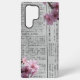 A Samsung case featuring a Japanese newspaper and sakura blossoms.