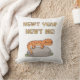 A throw pillow with a doodle of a red spotted newt standing on a rock with the funny pun caption that reads' Newt Year Newt Me!" Start the new year with a smile!