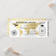Boarding pass graduation party ticket invitation featuring a elegant gold foil destination world map, compass, aeroplane, graduate cap, and a personalised text template.